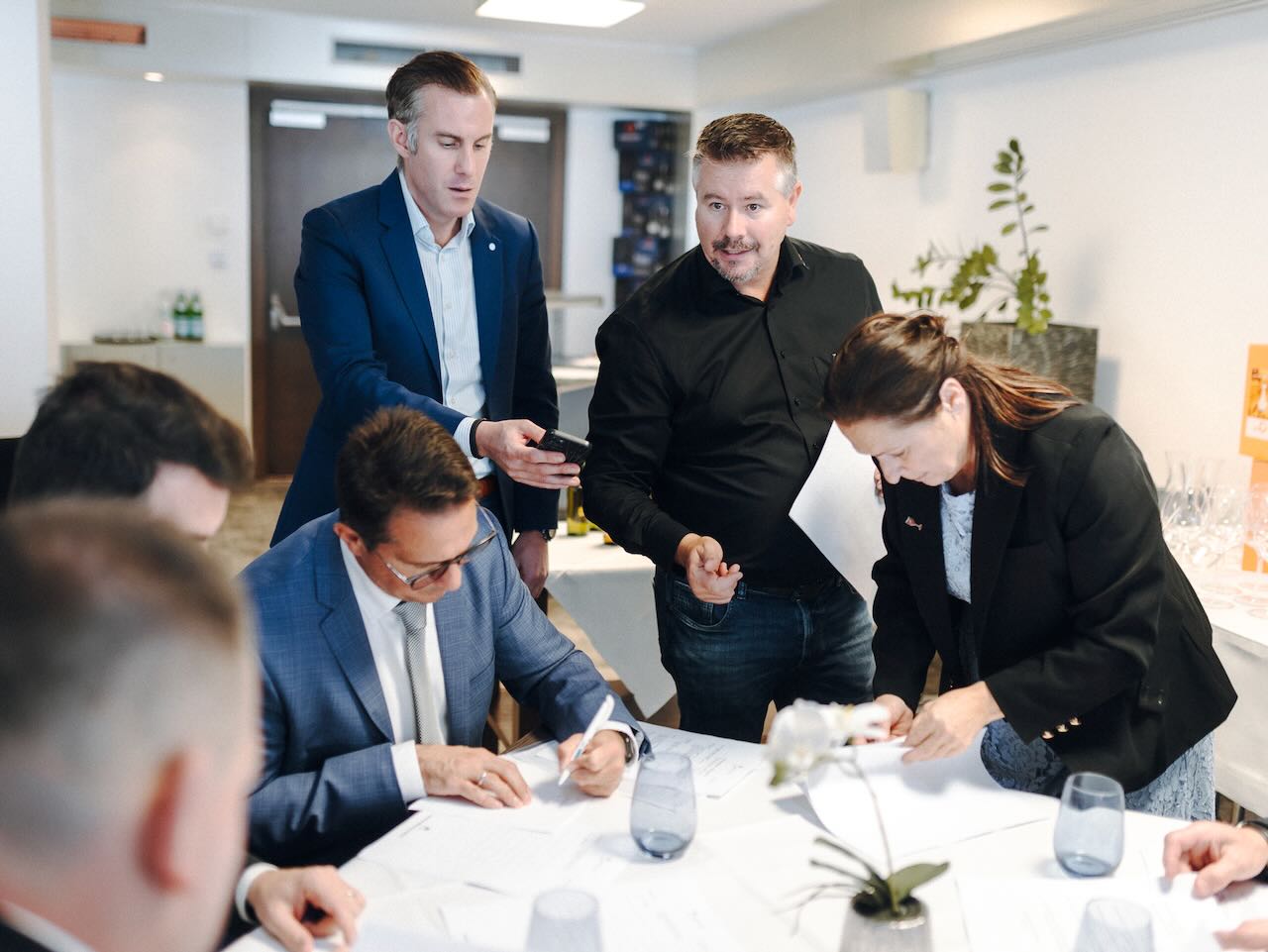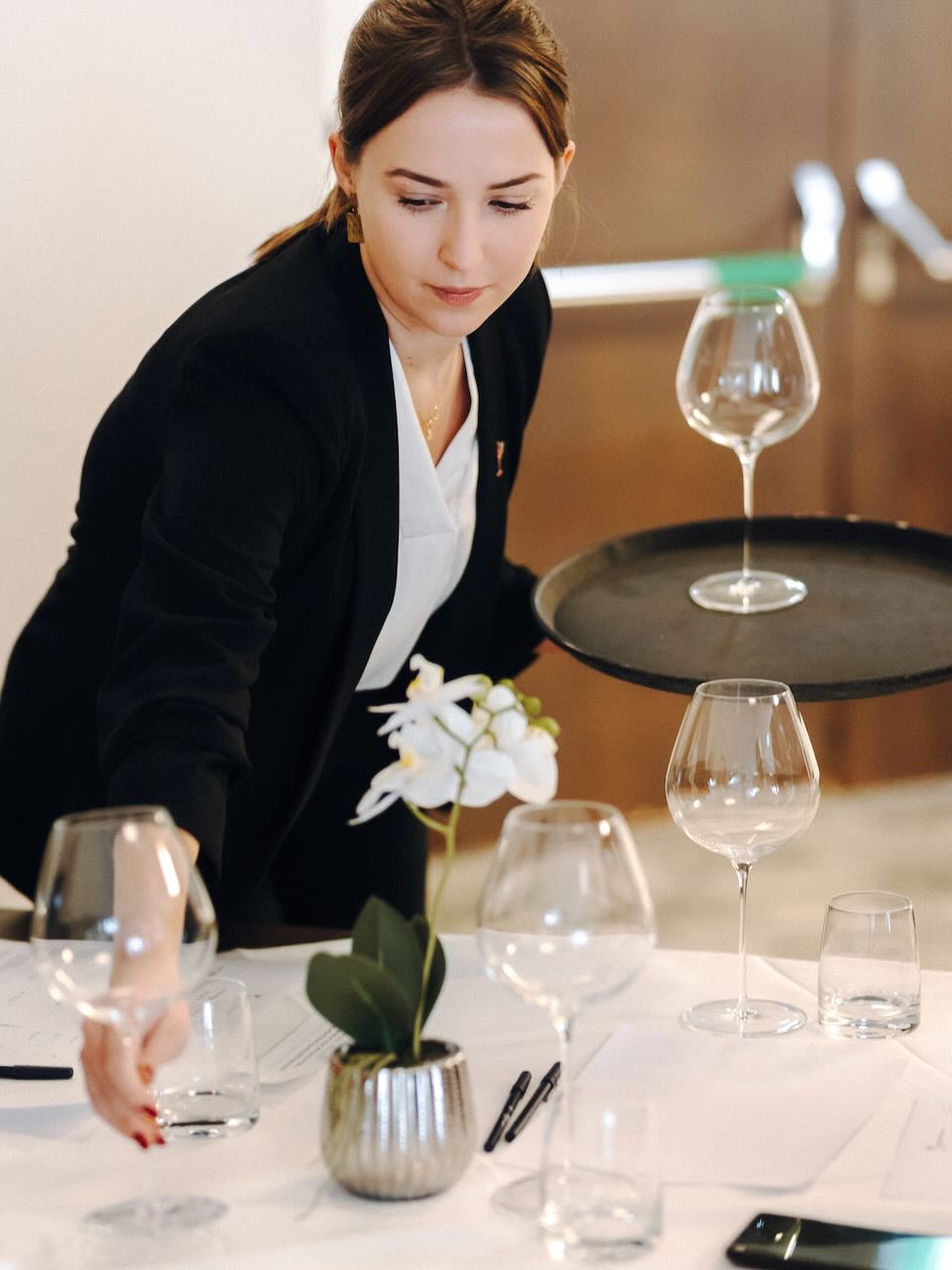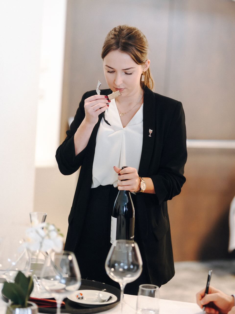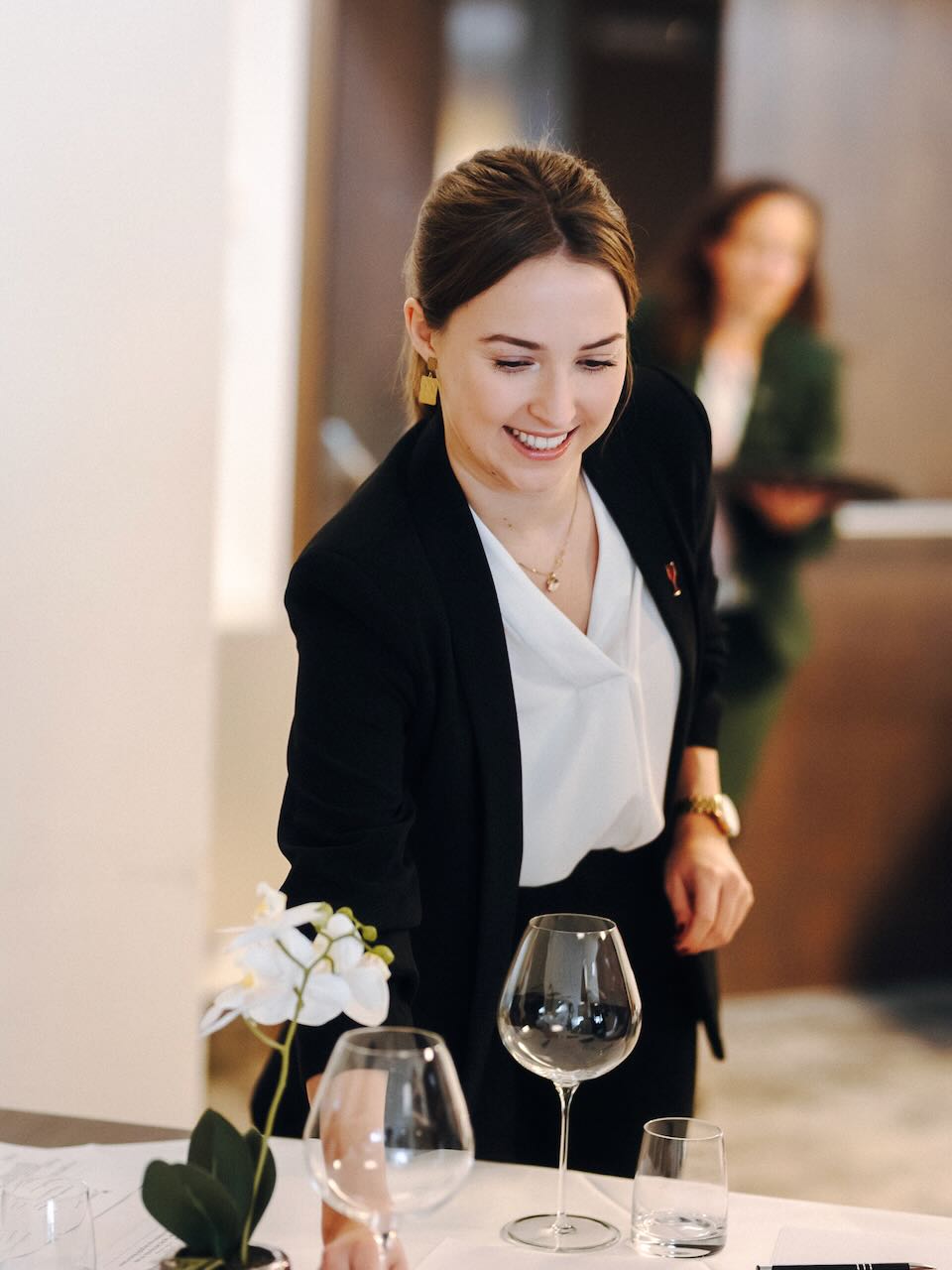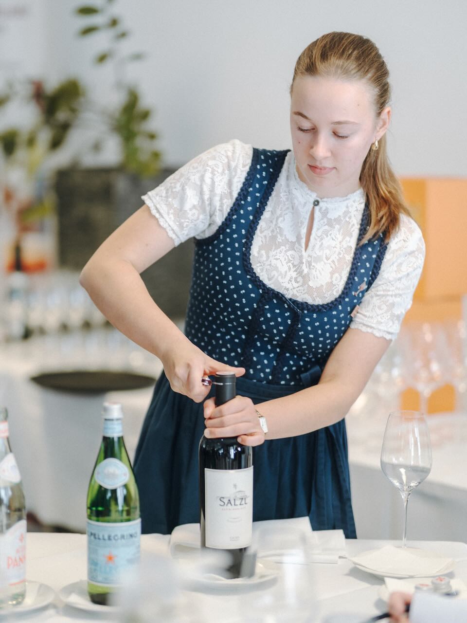 Als erste Aufgabe galt es einen umfassenden Fragebogen auszufüllen, der etwa die klassifizierten Rebsorten österreichischer DAC-Gebiete, das Benennen von Flaschengrößen, das Verorten von namhaften Rieden inklusive Winzer*in, Kellertechnik und allgemeine Getränkekunde umfasste. Beim praktischen Teil war eine Flasche Rotwein zu servieren und auf den kniffligen Änderungswunsch eines Gastes einzugehen.