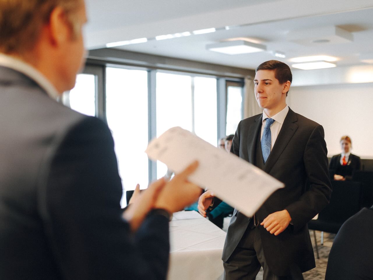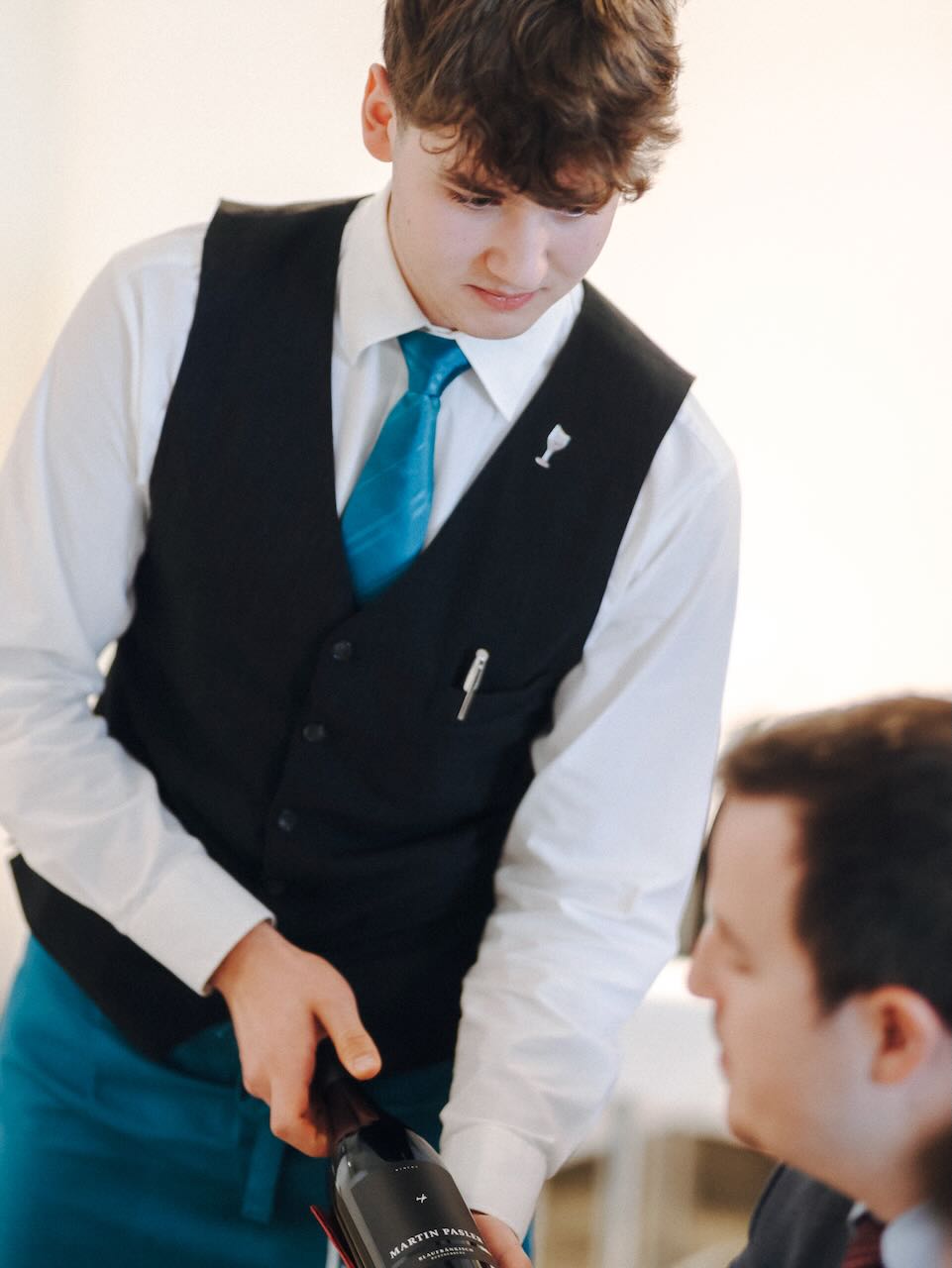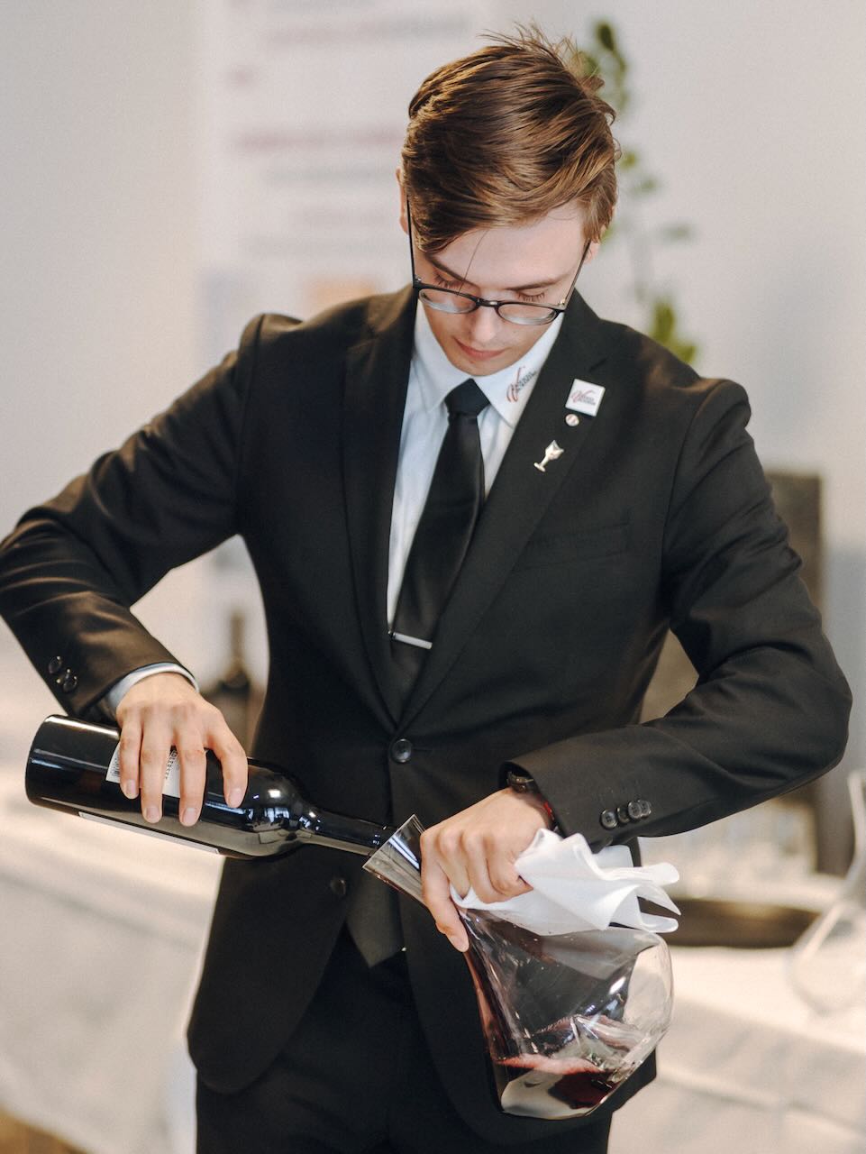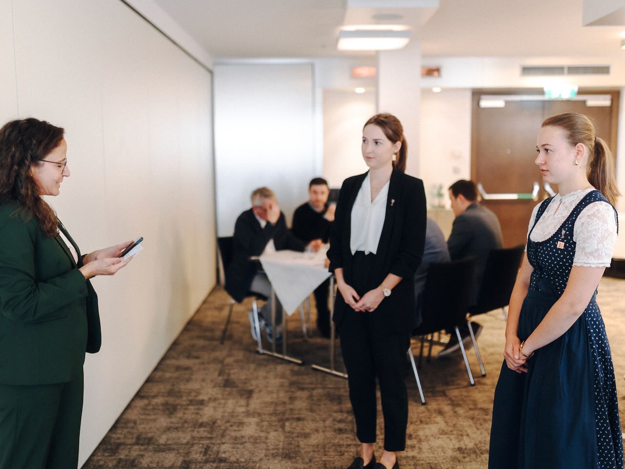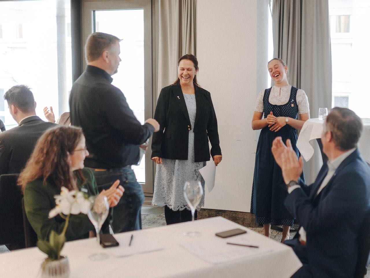 Als erste Aufgabe galt es einen umfassenden Fragebogen auszufüllen, der etwa die klassifizierten Rebsorten österreichischer DAC-Gebiete, das Benennen von Flaschengrößen, das Verorten von namhaften Rieden inklusive Winzer*in, Kellertechnik und allgemeine Getränkekunde umfasste. Beim praktischen Teil war eine Flasche Rotwein zu servieren und auf den kniffligen Änderungswunsch eines Gastes einzugehen.
