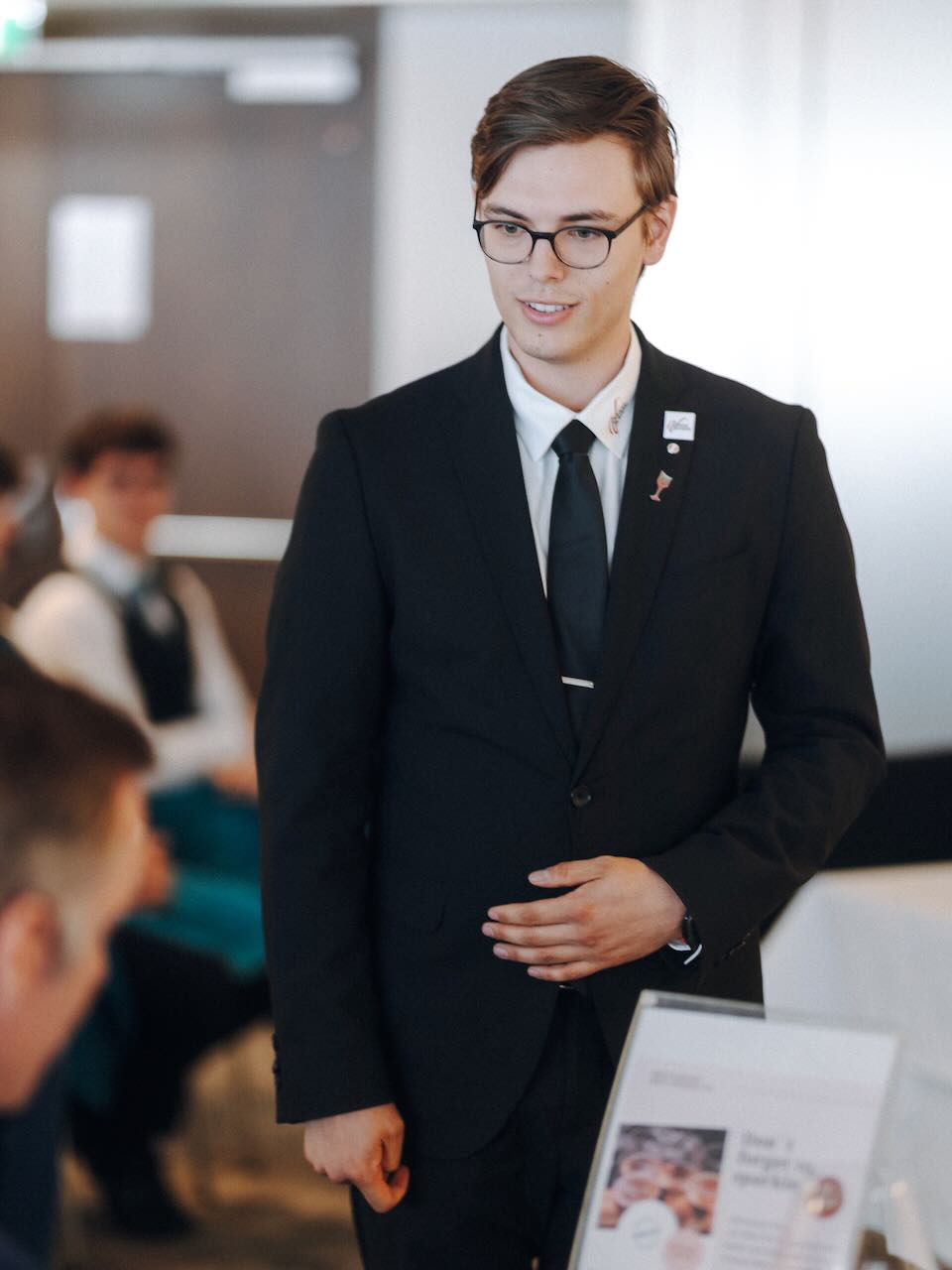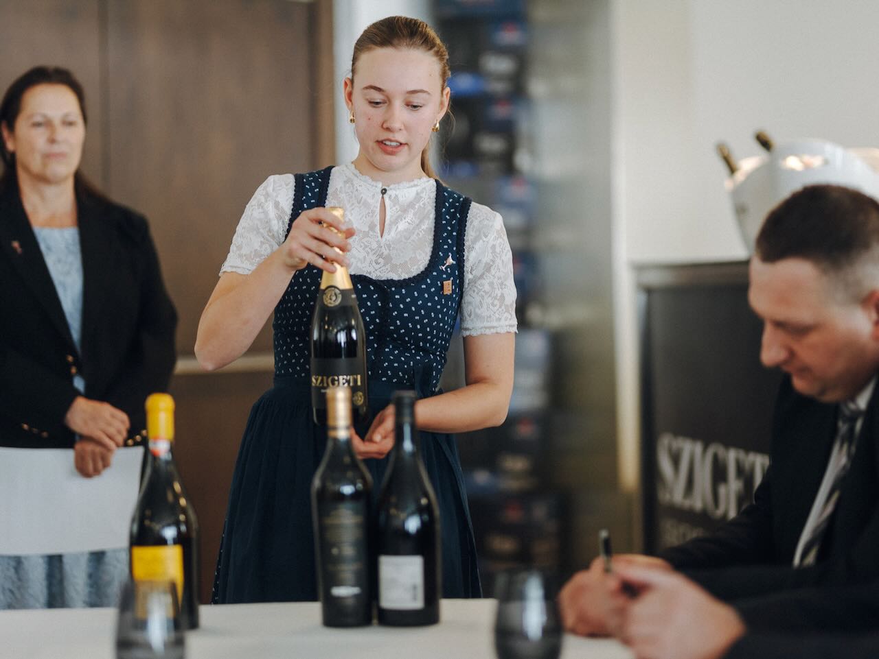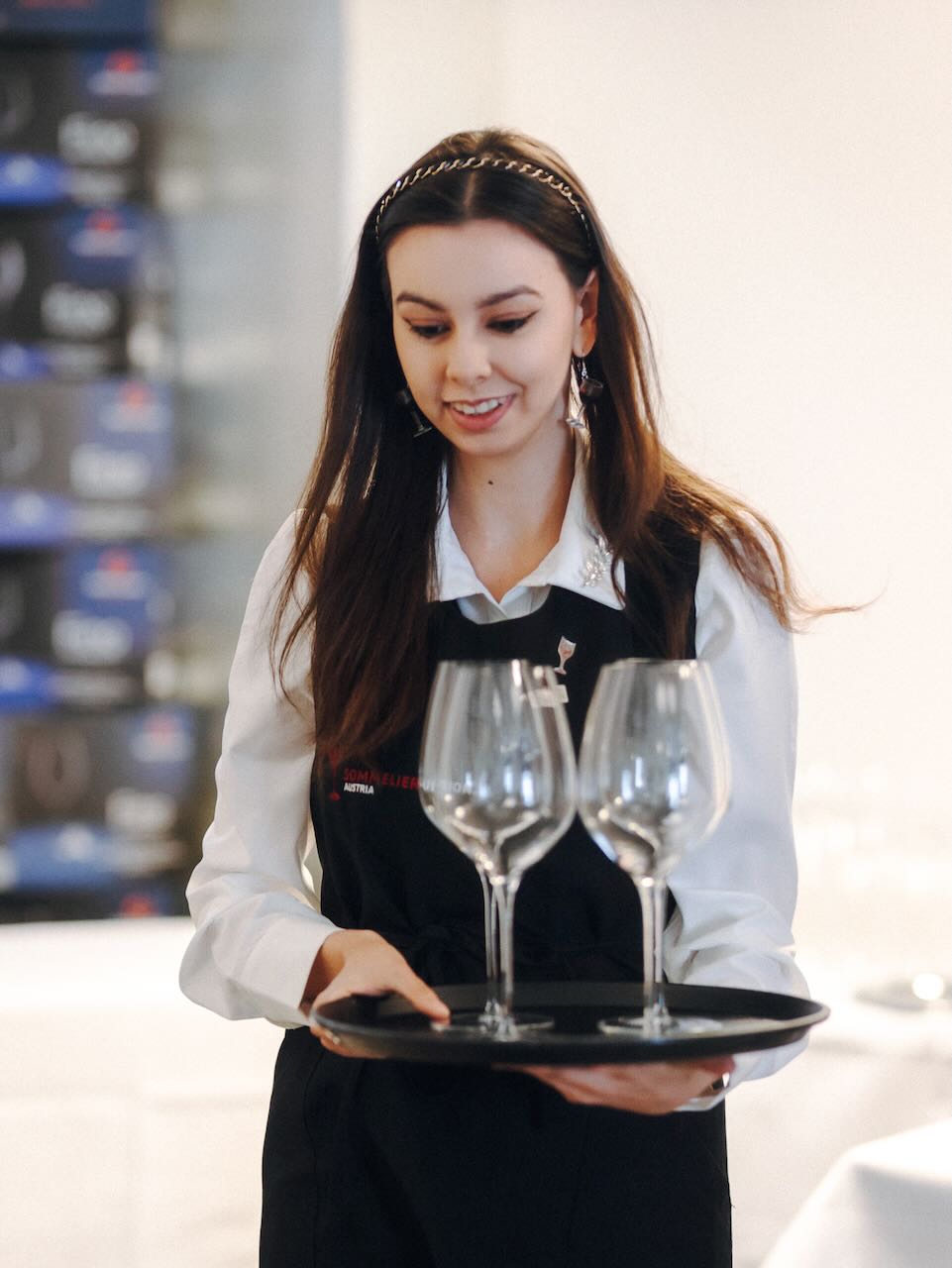 Im Finale wurden verschiedene Restaurantsituationen simuliert. So hatten an einem Tisch die Gäste vier Weine selbst mitgebracht, die es schlüssig zu reihen galt – nebst Empfehlung einer passenden Menüfolge und eines Zusatzverkaufs. An einem anderen Tisch klang die Aufgabe, eine Flasche Rotwein in zehn Minuten zu servieren, zunächst unspektakulär. Hier hatten die Gäste allerdings viele Fragen zum Wein, und schließlich äußerte ein Gast den Wunsch nach einer Alternative zum Wein, die auf Basis definierter Vorgaben auszuwählen und zu servieren war. Spannend erwies sich außerdem die Aufgabe, drei Weine aus schwarzen Gläsern zu verkosten und zu beschreiben, wobei der Rotwein als kleine Hürde – wie die Weißweine – gekühlt war. Weiters mussten drei Spirituosen nur durch Riechen benannt werden – Gin, Marillenbrand und Whiskey. Schließlich wurde auch noch Wissen abgefragt, etwa von welchem Hersteller der erste Sekt in Österreich produziert wurde, welche Erfindung auf Lenz Moser zurückgeht, welche Rebsorten sich hinter Schilcher und Uhudler verbergen oder wo Master of Wine Roman Horvath arbeitet.