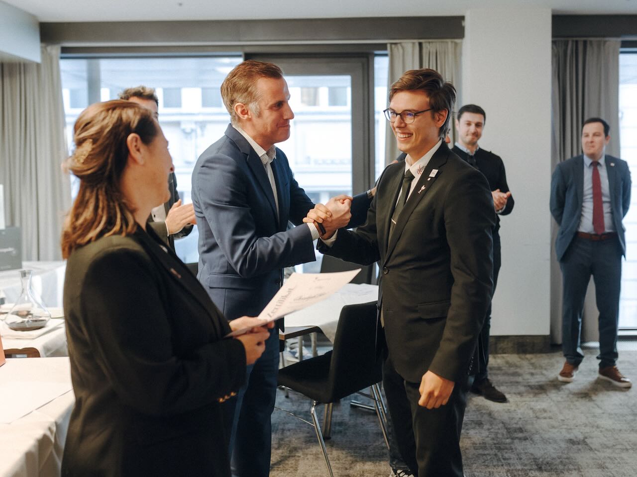 Jedes Jahr organisieren wir die Sommelier-Rookies den Wettbewerb „Bester Nachwuchssommelier Österreichs“. Zugelassen sind Kandidat*innen, die noch keine abgeschlossene Ausbildung als Diplom-Sommelier haben und maximal 22 Jahre alt sind. Am 3. November 2025 stellten sich 18 Kandidat*innen – so viele wie noch nie – im DoubleTree by Hilton Vienna Schönbrunn den vielfältigen Aufgaben der Jury. Der Vorsitz oblag Philipp Künemund, Vizepräsident der Sommelier Union Deutschland.