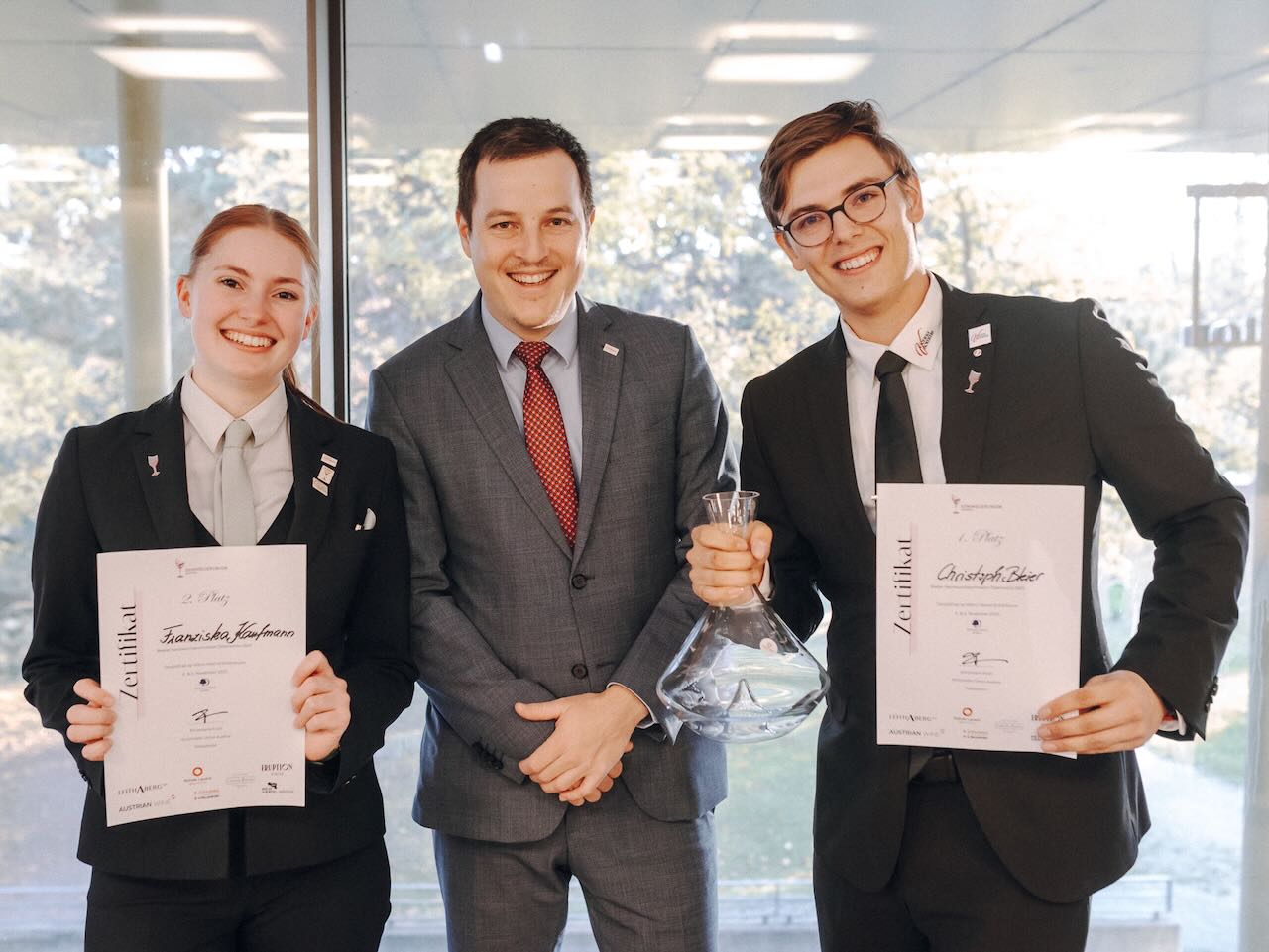 Bei all diesen Aufgaben konnte Christoph Bleier die meisten Punkte sammeln und darf sich über den Titel „Bester Nachwuchssommelier 2025“ freuen. Damit schließt der gebürtige Wiener an seinen Erfolg von 2022 an, als er den Wettbewerb das erste Mal gewann. Aktuell ist Christoph Bleier bei Wein & Co als Weinberater tätig. Der zweite Platz ging an Franziska Kaufmann, Schülerin der Hertha-Firnberg-HLW Wien, und den dritten Platz sicherte sich Sophie Winkelhofer, Schülerin der HLF Krems.