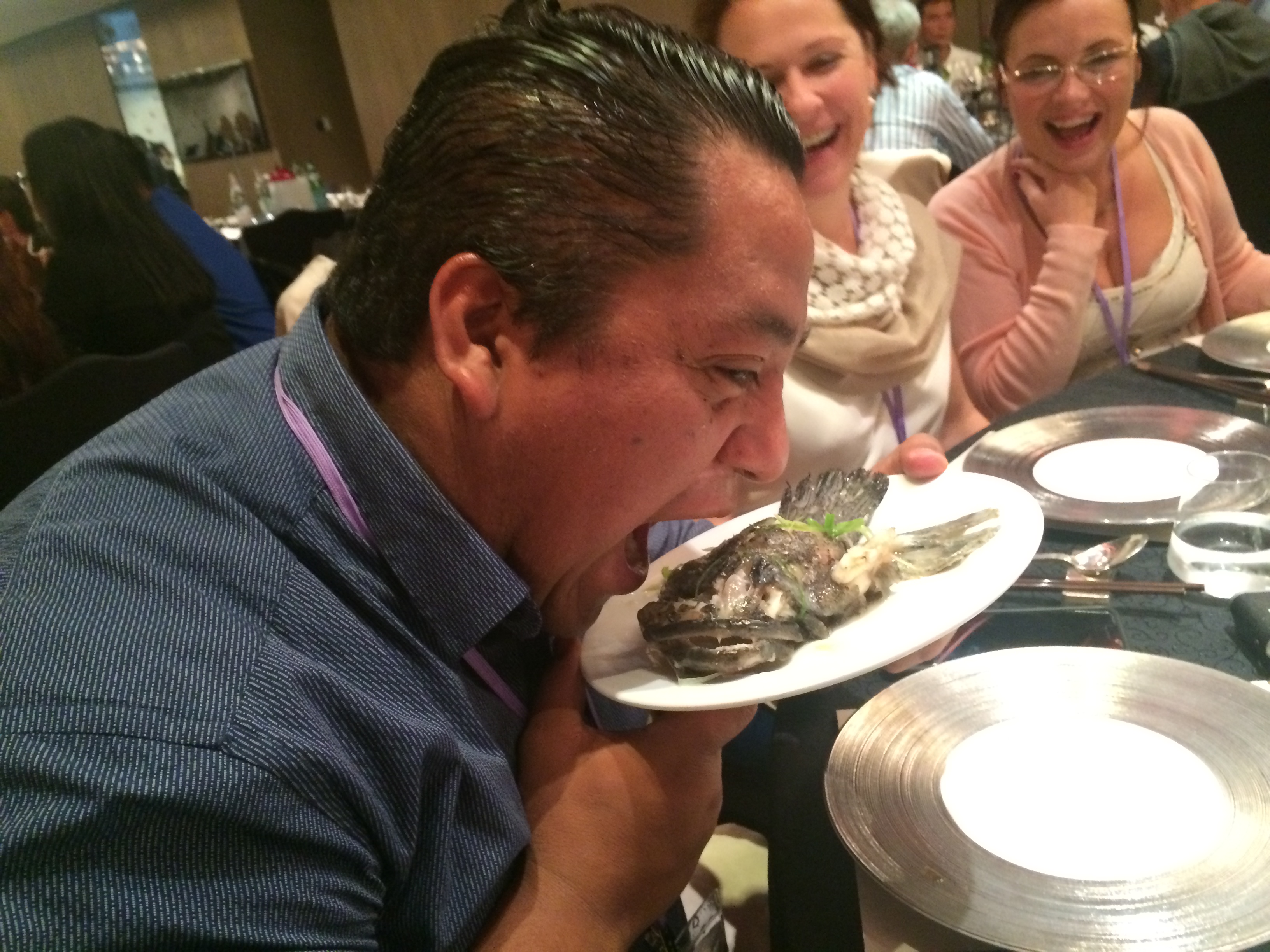 Das Abschlussdinner wurde von österreichischen Weinen begleitet, organisiert von der ÖWM. "Thank you Austria!", tönte es sogar aus den Reihen der französischen Delegation begeistert. Für uns außerdem wieder bemerkenswert, wie gerne im asiatischen Raum kräftige und tanninreiche Rotweine zu Fische und Schalentieren genossen werden.