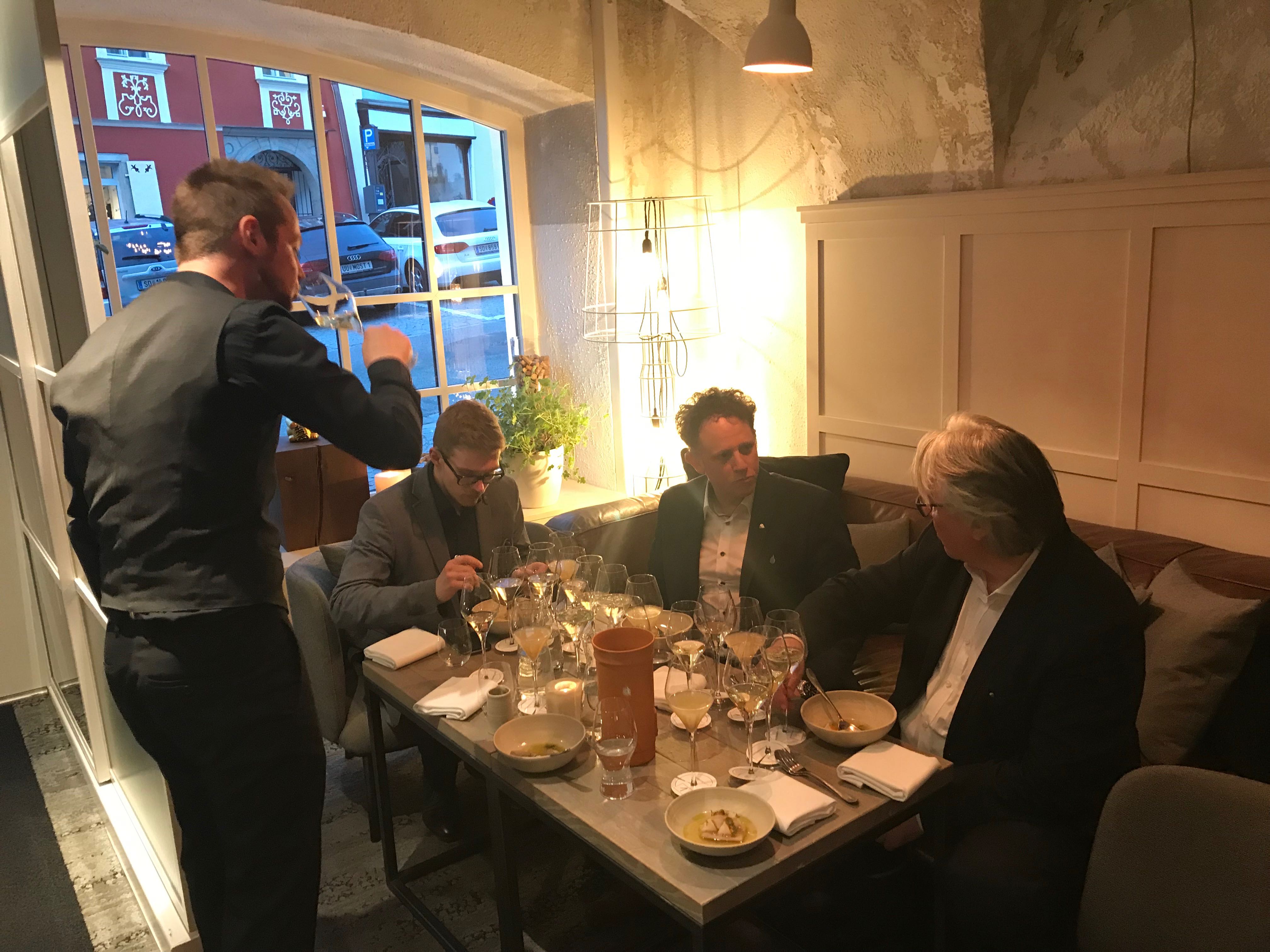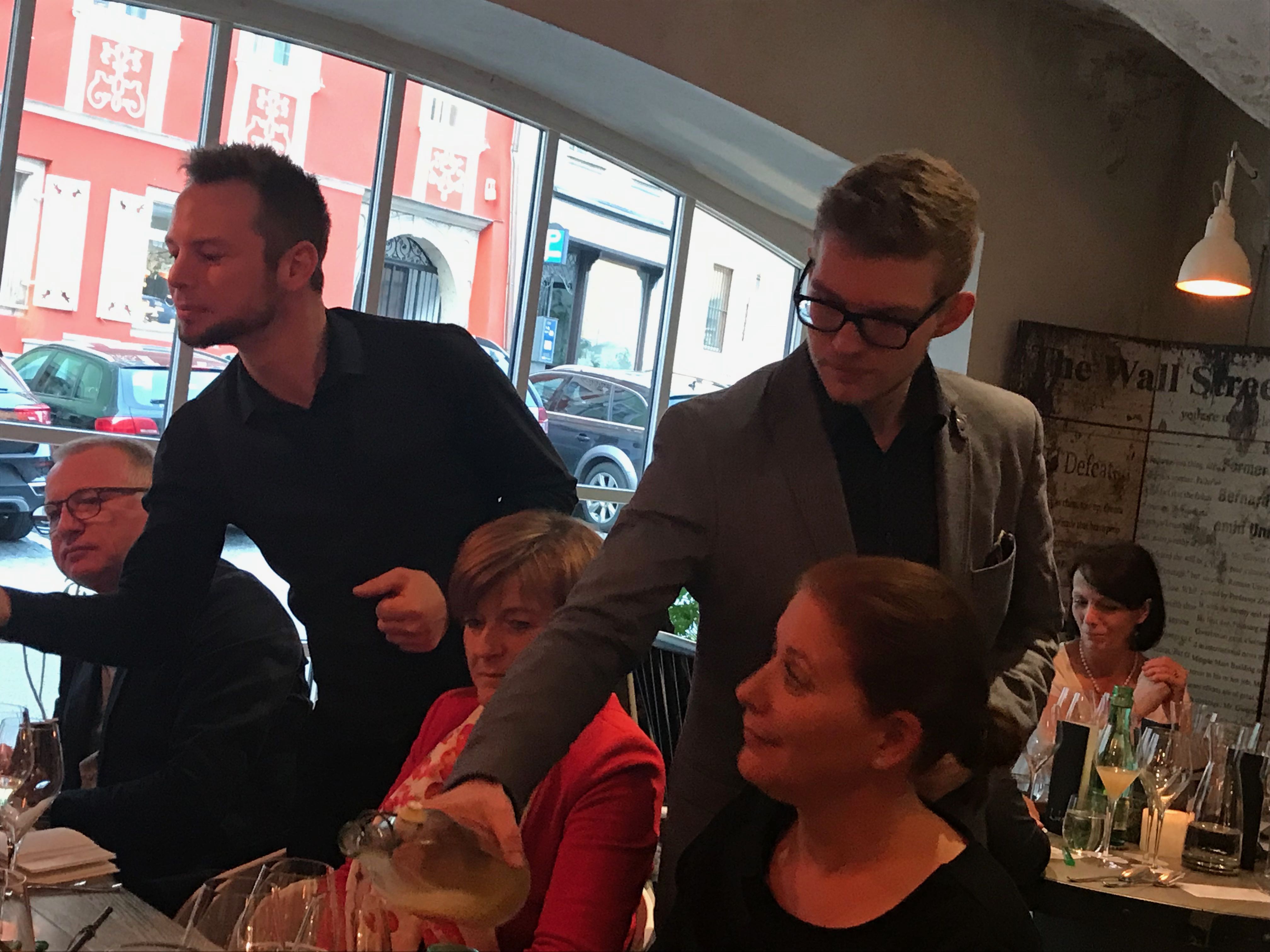 Die erste Runde dieser vierteiligen Veranstaltungsreihe fand im Schärdinger Gourmet-Restaurant Lukas statt. Die Gerichte aus der Küche von Lukas Kienbauer waren in gewohnter Weise für sich ein Genuss. Im Vordergrund standen an diesem Abend allerdings die Sommeliers als Genussberater und Harmoniekünstler in Sachen Getränkebegleitung.