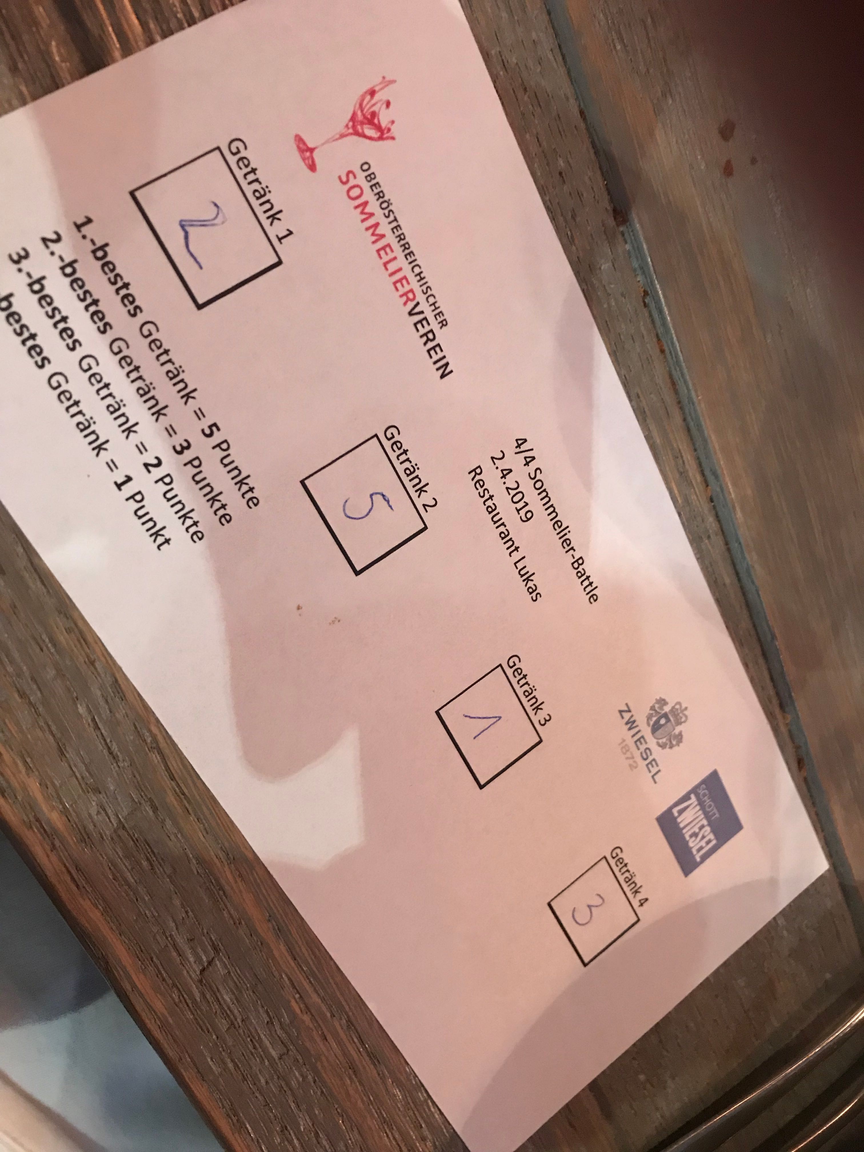 Oberösterreich verfügt über ausgezeichnete Restaurants, die weit über die Landesgrenzen hinaus für Furore sorgen. Parallel dazu hat sich hier eine Szene höchst angesehener Sommeliers entwickelt. Um deren Können einem breiteren Publikum vor Augen zu führen, hat der Oberösterreichische Sommelierverein das 4/4 Sommelier Battle ins Leben gerufen. Dafür wurde aus jedem der geografischen Viertel Oberösterreichs ein Restaurant ausgewählt, über das Jahr 2019 verteilt ein 4-Gang-Menü zu gestalten. Zu jedem Termin treffen vier Sommeliers aufeinander – je einer stellvertretend für sein Viertel –, die zu jedem Gang ein passendes Getränk servieren. Es sind also vier Getränke, deren beste Harmonie zur jeweiligen Speise von den Gästen durch die Vergabe von Punkten bewertet wird. Bei jedem Gang sammeln die Sommeliers Punkte.