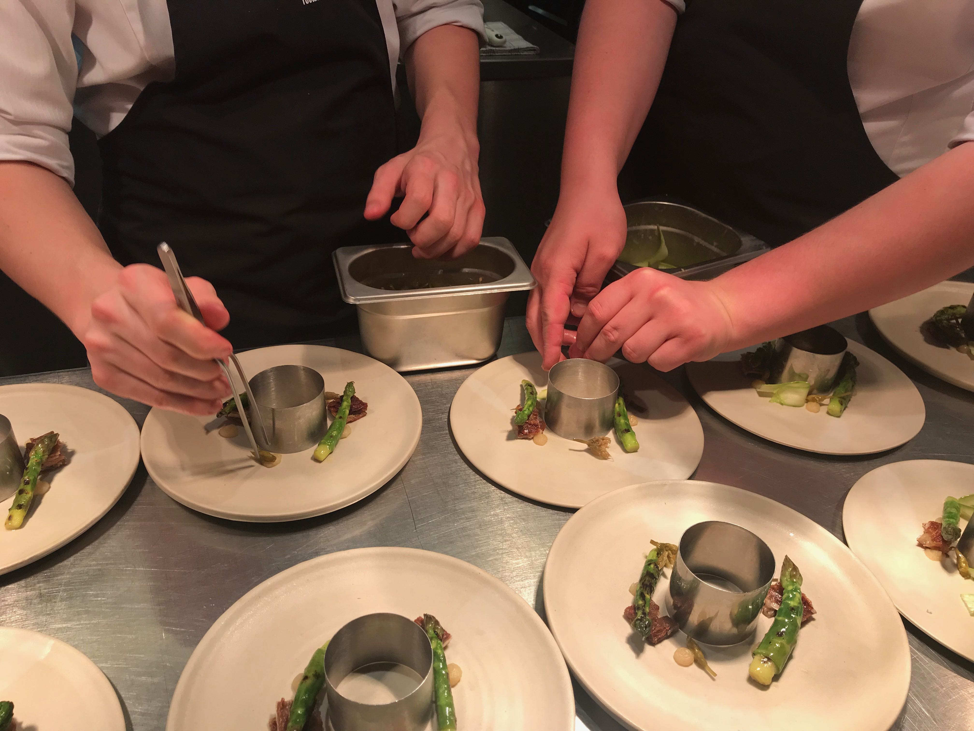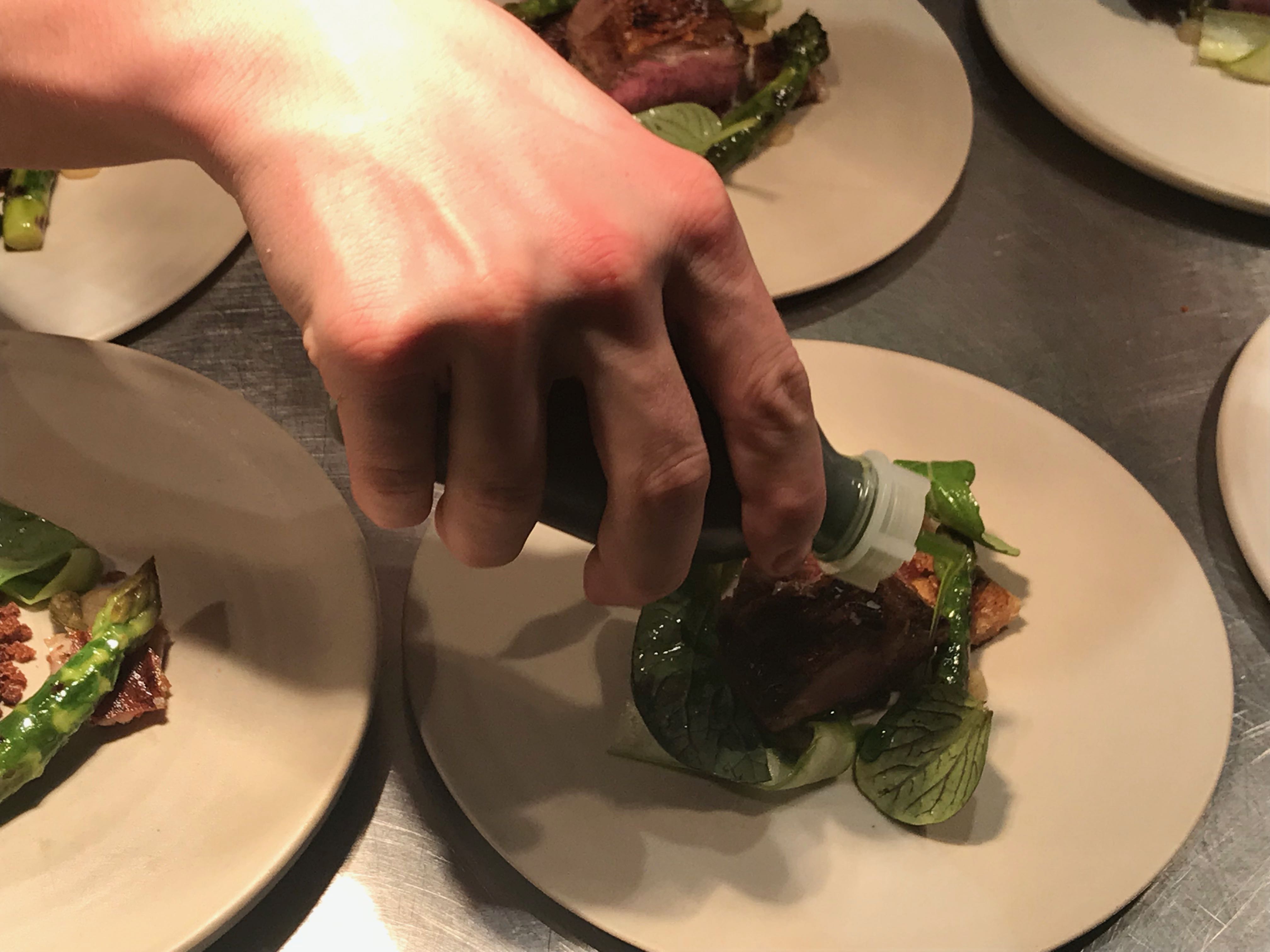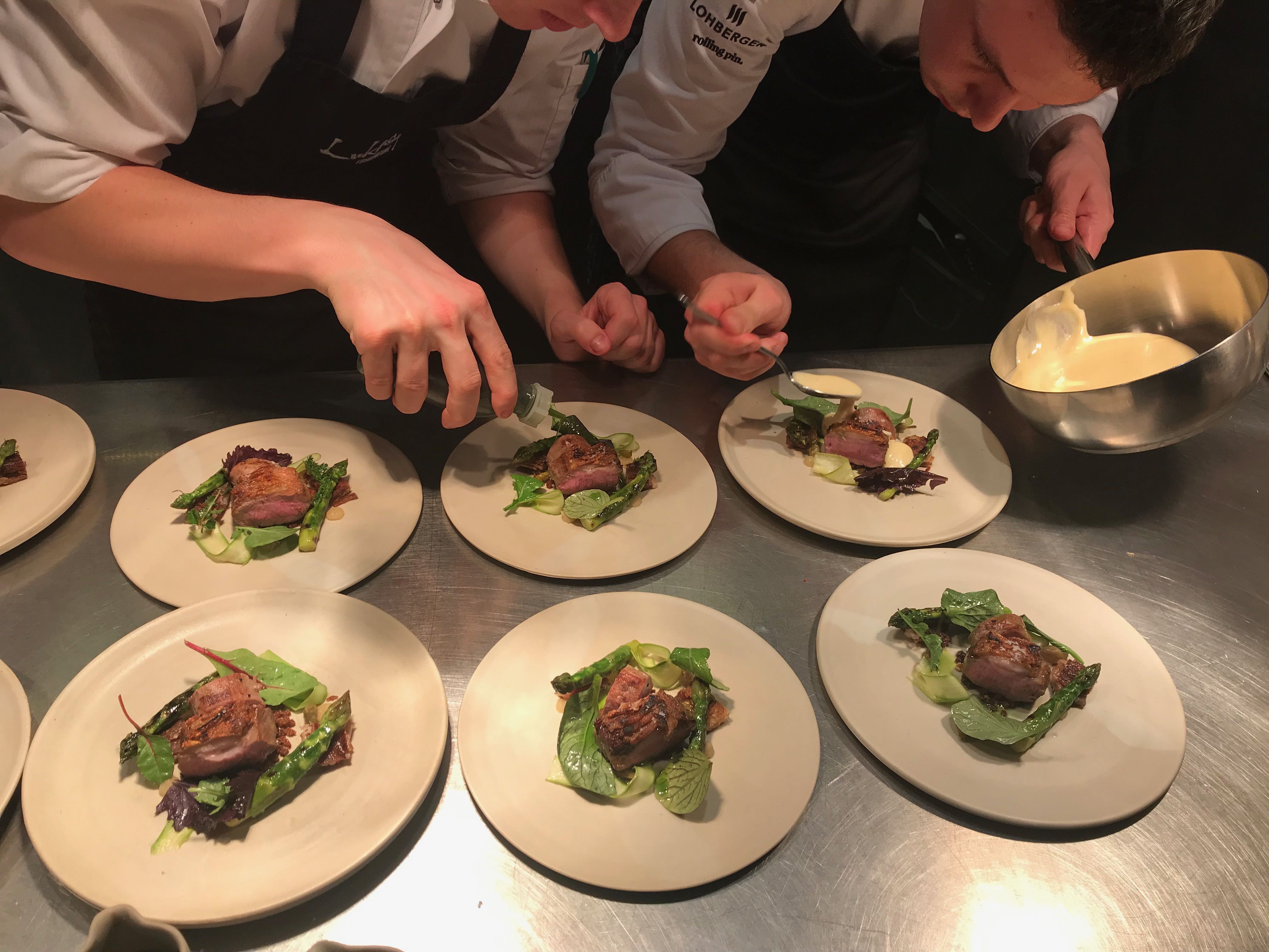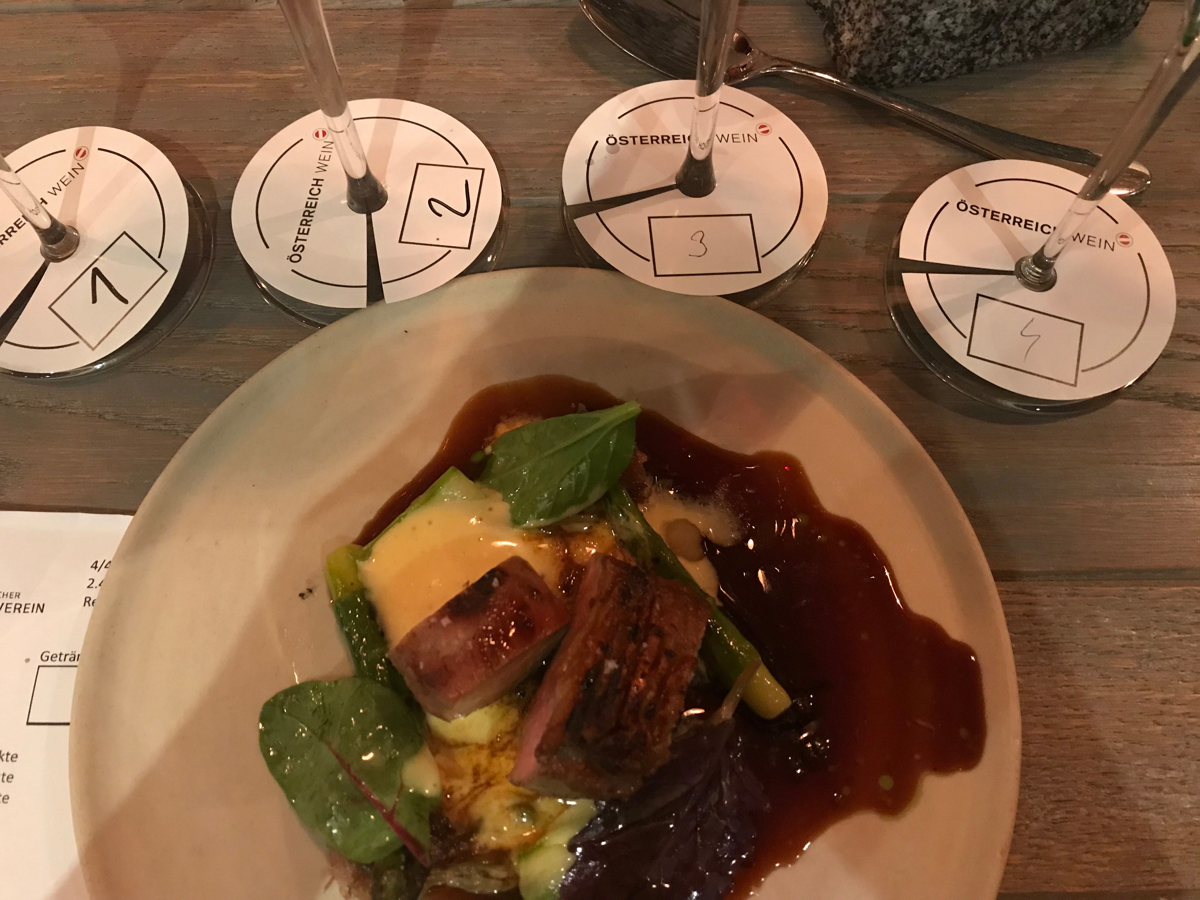 Zum Hauptgang (dritter Gang) war Lamm-Spargel-Miso angesagt und Restaurant Lukas-Haussommelier Timo Weisheidinger überzeugte dazu mit einem St. Eugene Barrique aus dem französischen Roussillon.