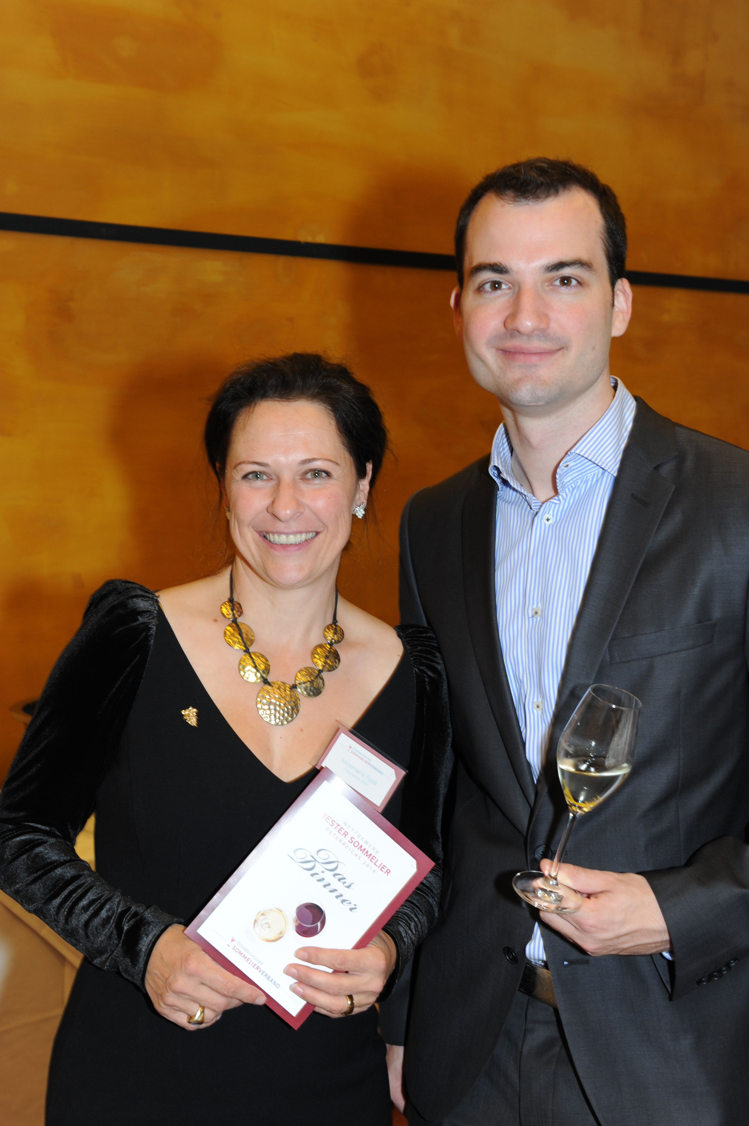 Den zweiten Platz sicherte sich Steve Breitzke vom Restaurant „Le Loft“ in Wien. Er wird Österreich bei der Europameisterschaft 2017 vertreten und hat klaren Heimvorteil, findet dieser Wettbewerb doch in Wien statt. Steve Breitzke selbst war völlig überrascht von seinem Erfolg. „Ich würde es sofort wieder machen“ sagte er sofort nach der Siegerehrung. Der aus Deutschland stammende Sommelier mit einem Faible für Natural Wines ist im Niederösterreichischen Sommelierverein organisiert. Harry Wurm ist als Landespräsident des NSOV natürlich stolz, wenn Mitglieder auf so hohem Level teilnehmen und dann gar Österreich bei der EM vertreten. „Es ist schön zu sehen, wenn dann jemand vorn im Rampenlicht steht und die Lorbeeren ernten kann“, so Harry Wurm. Für Steve Breitzke, der vor acht Jahren bei Döllerer in Golling begonnen hat und seit fünf Jahren in Wien lebt, ist die EM 2017 im Augenblick noch weit weg. Er widmet sich erst einmal seinem Training für dem Master Sommelier. Ein Ziel, das er auch mit dem Besten Sommelier Österreichs 2014, mit Suwi Zlatic teilt.