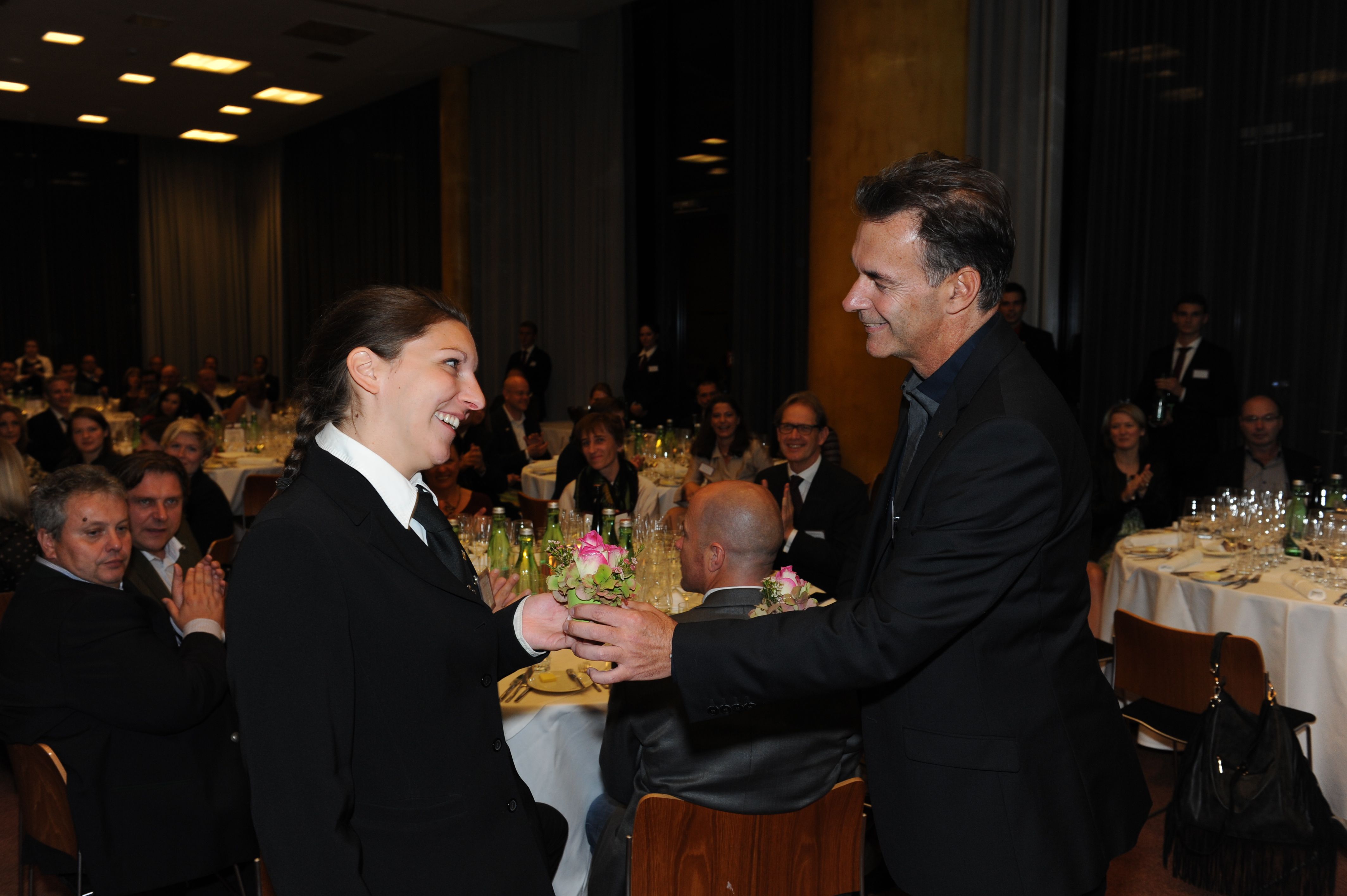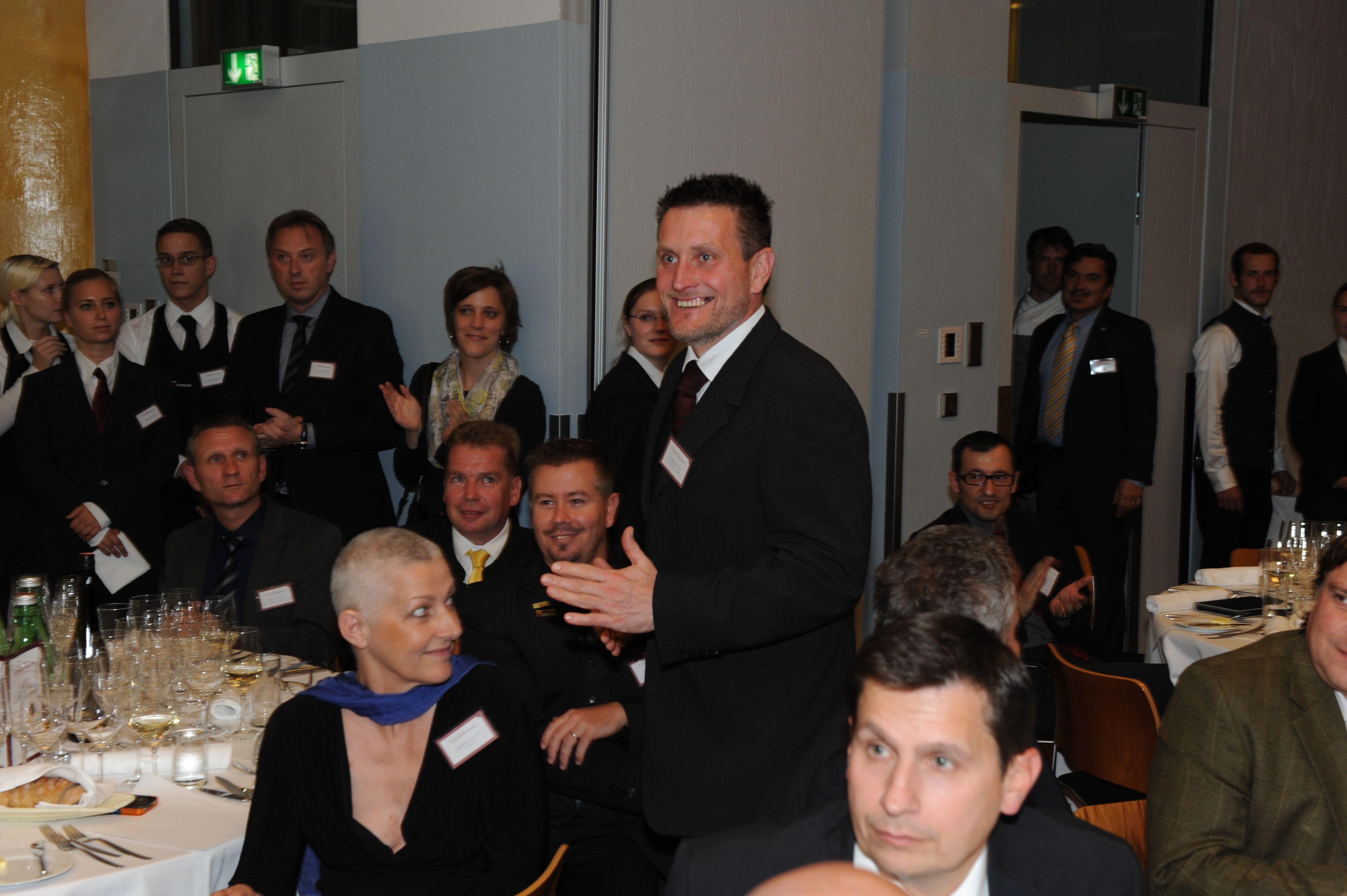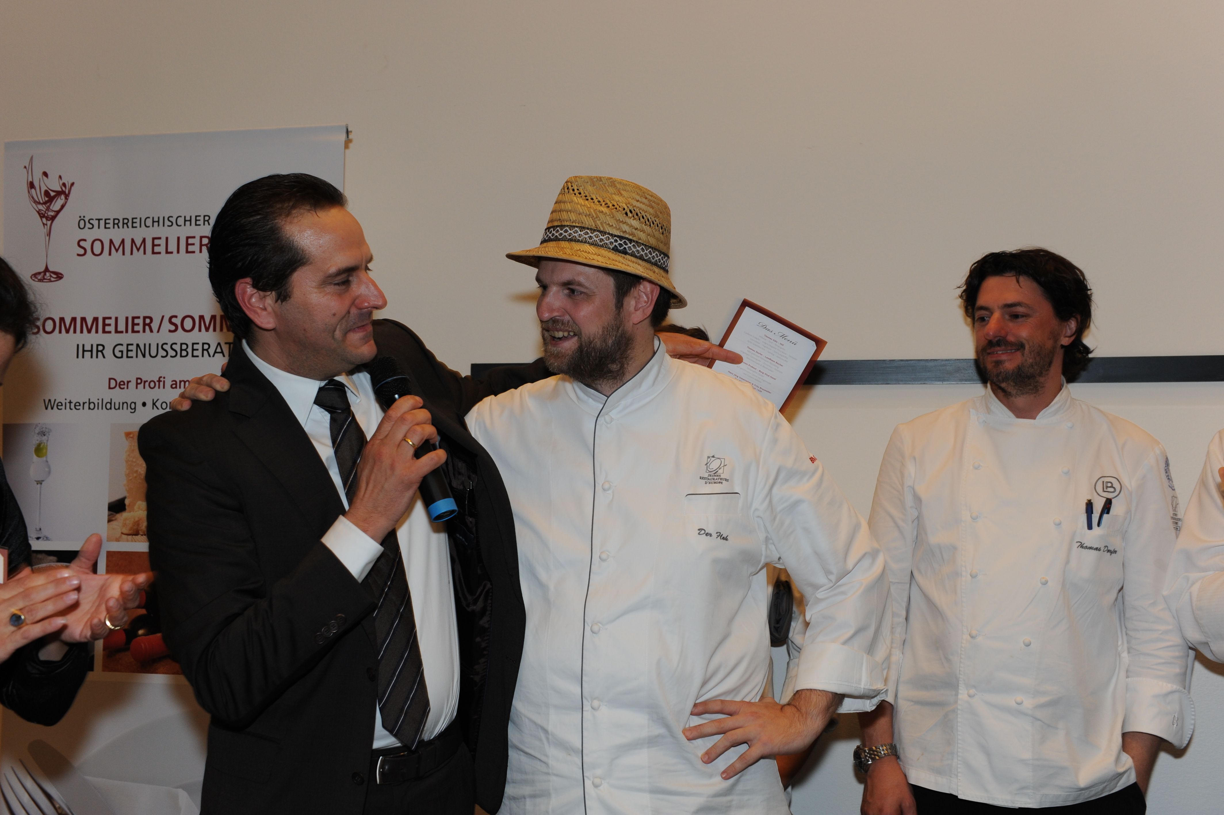 Suwi Zlatic konnte in allen Bereichen am stärksten punkten und hatte mit seinem Charme auch sofort das Publikum im Griff. Der 32-jährige Tiroler von Geigers Posthotel in Serfaus konnte sich in einem bis zuletzt spannenden Wettkampf mit einer bravourösen Performance durchsetzen. Sein erster Platz ist zugleich auch das Ticket für die Sommelier-Weltmeisterschaft 2016 in Argentinien. Der 32-jährige gebürtige Bosnier kam 1993 nach Österreich und lebt seit 12 Jahren in Serfaus. Er hatte sich akribisch auf diesen Wettbewerb vorbereitet. Unterstützung erhielt er dabei sowohl von Chef und Hotelier Florian Geiger als auch vom Tiroler Sommelierverband. Annemarie Foidl, Präsidentin des Österreichischen Sommelierverbands, kennt den Ehrgeiz von Suwi Zlatic und seinen absoluten Willen, etwas erreichen zu wollen. „Ein Wettbewerb ist etwas ganz anderes als im Restaurant zu stehen. Du musst wissen, was von dir verlangt wird. Das bedeutet gezielte Vorbereitung wie bei einem Sportwettkampf. Suwi war diesbezüglich wohl der Versierteste und am besten aufgestellt, was die Unterstützung betrifft. Es wäre unser Anliegen, dass alle Chefs ihre guten Mitarbeiter mehr unterstützen!“